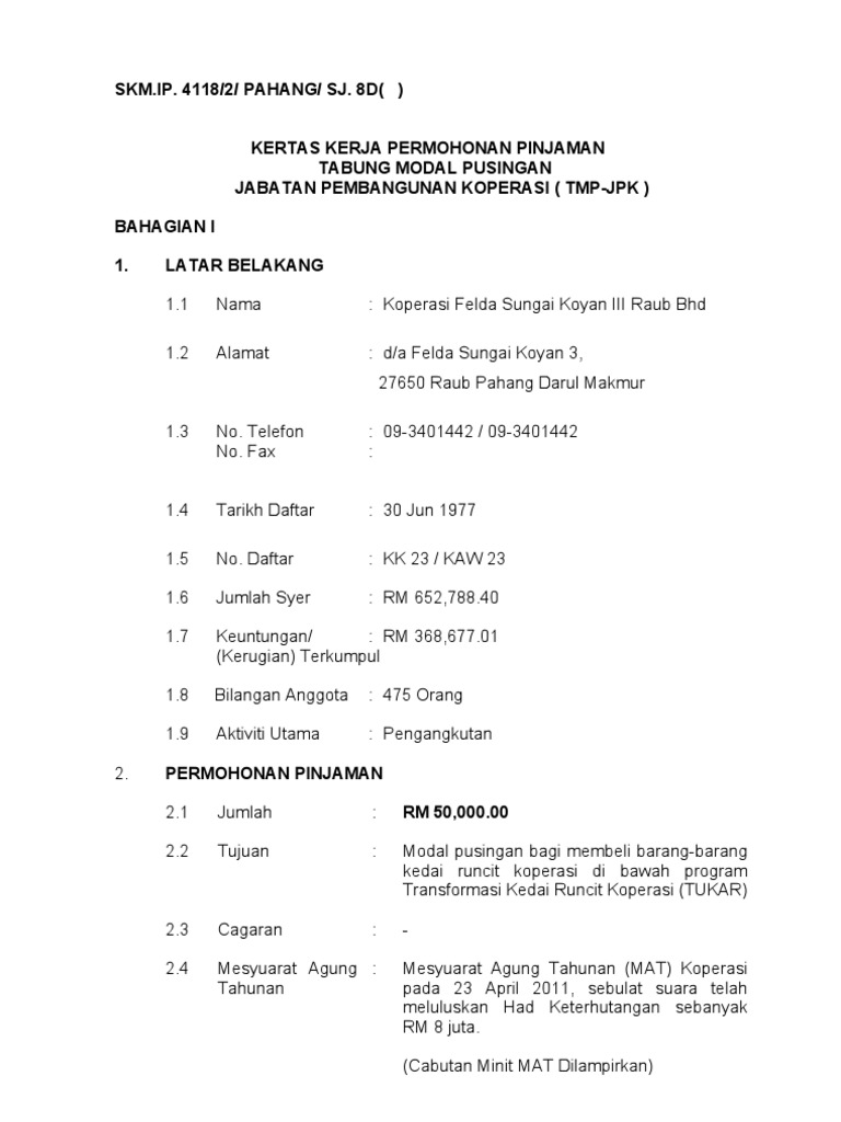 Kertas Kerja Permohonan Tmp Jpk Pdf
